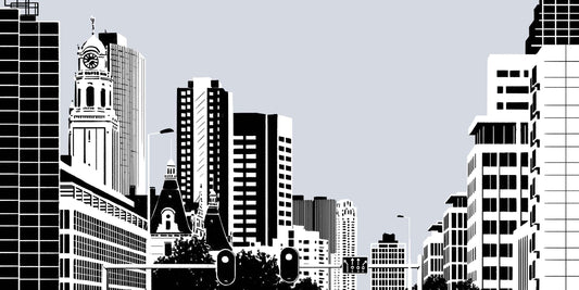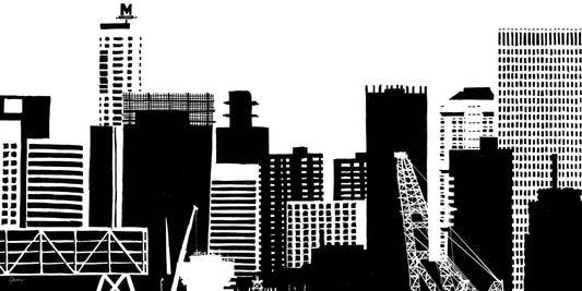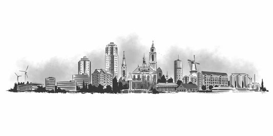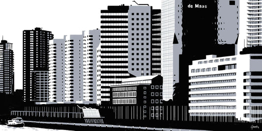 De skyline van Rotterdam is altijd in beweging. Wolkenkrabbers, bruggen en reflecties in het water vormen een krachtig stadsbeeld. Deze zwart-wit posters vangen de dynamiek en architectuur in heldere, contrastrijke composities.