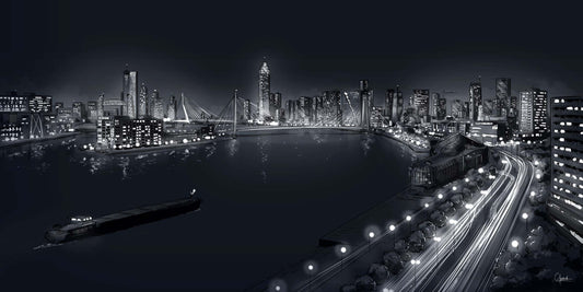 Vind de mooiste Rotterdam posters met gedetailleerde tekeningen van de skyline, iconische architectuur en de bruisende haven. Geprint op hoogwaardig fine art papier of luxe canvas, deze kunstwerken brengen de dynamiek van de stad tot leven.